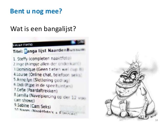 Видео bangalijst in 1950 * blendtv канала blendtv. Het gaat om smaad, aantasting van de eer of de goede naam. Neem dan contact op met de politie. Een dergelijke lijst kan worden rondgemaild of gepubliceerd op websites van sociale media. Sta jij op zo'n bangalijst?